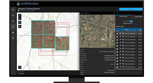 ArcGIS fournit des outils permettant d'interroger des ensembles de données ou de reconnaître des objets dans l'imagerie afin d'affiner la zone de recherche. Ces informations peuvent être intégrées aux renseignements en temps réel pour confirmer les positions ennemis. ArcGIS peut être utilisé pour effectuer une analyse d'adéquation qui aide à identifier de nouvelles zones à surveiller.